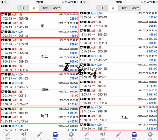 周五黄金在趋势引导下,再次果断进场,完美收官。无趋势时,观之,静之。等候趋势究竟明亮后,再着手也不迟。这样会失掉少量的机遇,但却赢得了资金的安全。周五盈利2975美元。
