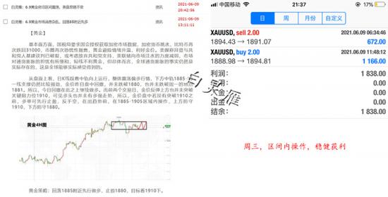 回顾周三,黄金正如笔者所说,区间内震荡,偏多,行情与笔者的预期一致。试想一下,做事前能做到胸有成竹,我们能不获胜么,交易也是如此。交易两单,第一单:1894空单,1891出局,获利672;第二单:1888多单,1894出局,获利1166;共获利1838美元。