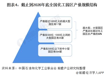 根据中国石油和化学工业联合会资料,截至2020年底,全国重点化工园区或以石油和化工为主导产业的工业园区共有616家,其中国家级化工园区(包括经济技术开发区、高新区等)48家。其中,产值超过千亿的超大型园区由”十二五”末的8家增加到17家,500亿-1000亿的大型园区35家,超大型和大型园区产值占比超过化工园区总产值的50%,化工园区集聚规模效益明显。