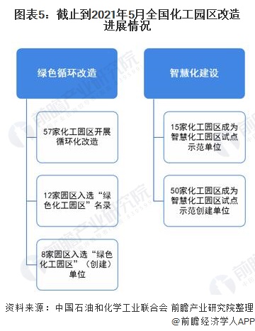 “十三五”以来,国内化工园区把安全、绿色、智慧化建设放在首位,大力提升安全监管水平、发展循环经济,安全水平、能源循环利用率不断提升。截至2021年5月,57家化工园区在国家发改委产业发展司的支持下开展了循环化改造,12家园区入选“绿色化工园区”名录,8家园区入选“绿色化工园区”(创建)单位;