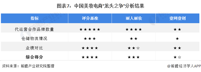 在美妆电商行业中,代运营合作品牌数量决定了美妆电商的运营能力,而电商业绩能反应公司的经营概况。基于前文分析结果,前瞻认为,丽人丽妆因在代运营合作品牌数量、仓储物流、电商运行情况方面占有优势,目前是我国美妆电商企业中的“龙头”。