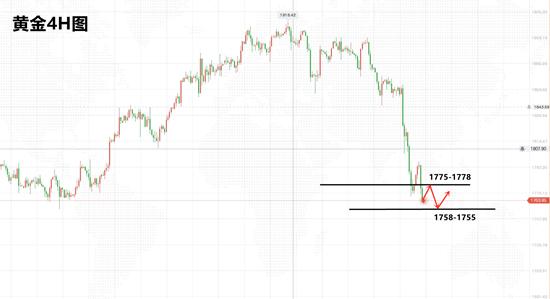 日线收盘一根饱满大阴线,短线还会惯性的下探收出新低,黄金昨日延续性爆量下跌,受此前美联储出乎市场意料地暗示将较预期提前升息及结束紧急购债计划。美联储货币政策立场转向鹰派。提振美元上涨,黄金受挫,创下了近期的阳大跌幅。且是连续两个交易日的下挫,消息面带动技术面的反转空头。加速下行阶段,昨日同样是开盘一路弱势下跌,最低至1767低位,4小时贴着短均线的极弱单边下跌,修正的幅度不大,几乎是无停顿式连阴下挫,而日线的收低。下周短线可能先惯性的走一波新低,但要留意空间持续性,局部有收敛放缓迹象,目前也到了回撤0.618的一个强支撑位置。昨日触及虽未强反抽,可能下探后进行反弹修正。所以综合分析下周操作上价格控盘白灵雁建议上方阻力关注1775-1778一线,下方支撑关注1758-1755一线。