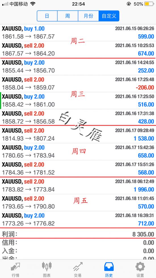 周三:共获利474美元。志不同道不合不相为谋,不可能所有的投资者都能理解、认同、执行我的思路,而我也仅仅只能帮助一部分人。相信,需要时间的沉淀,永恒,需要你我珍惜才能延续。我虽不能带你走的最快,但我一定可以带你走的很稳。