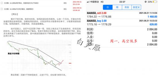 回顾周一,行情属于震荡偏多,笔者策略也很明确,回撤就是多。每日的行情无非就是多于空,我们选择一个点位和方向,依靠着去做单,比盲目的进场要轻松的多。
