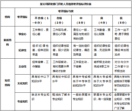 对于研发人员工作行为的评估,可以从主动性、服从性、责任心、协作精神、工作合理性、纪律性等方面进行考评。
