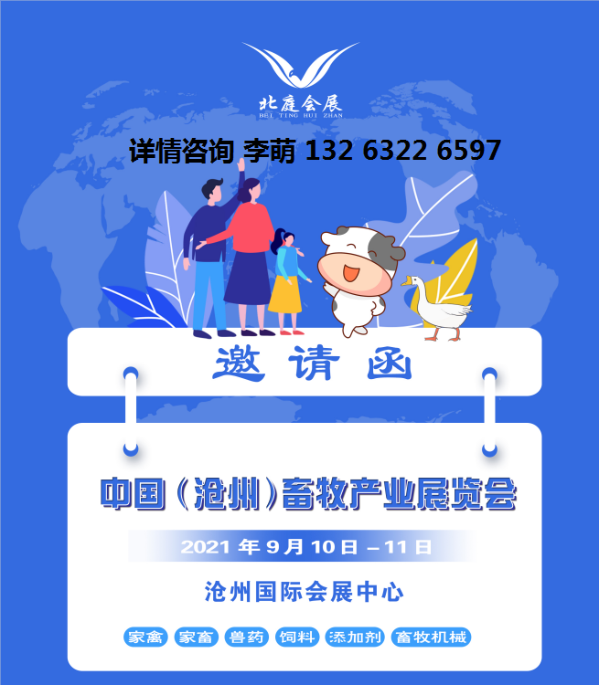 2021中国(沧州)畜牧产业展览会2021年9月10-11日在沧州国际会展中心举办,展会将集中展示畜牧业最新产品,邀请来自各省市和地区畜牧行业的政府单位、科研机构、协/学会、监督管理机构、养殖场、养殖大户、养殖合作社、畜牧企业及相关组织、经销商、代理商、新闻媒体等参观洽谈。通过展览展示,投资洽谈,技术研讨、信息传播等方式,搭建供需双方交流平台,实施“走出去”“引进来”发展战略,提高产业聚集效应,促进产业集群升级发展。
