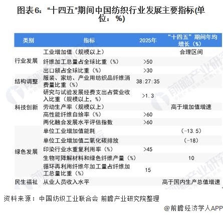 2021年6月下旬,中国纺织工业联合会发布《纺织行业“十四五”发展纲要》,提出按照“创新驱动的科技产业、文化引领的时尚产业、责任导向的绿色产业”发展方向,持续深化产业结构调整与转型升级,加大科技创新和人才培养力度,建成若干世界级先进纺织产业集群,形成一批知名跨国企业集团和有国际影响力的纺织服装品牌。“结构调整”、“科技创新”、“绿色发展”等仍然是“十四五”期间纺织行业发展的主旋律。