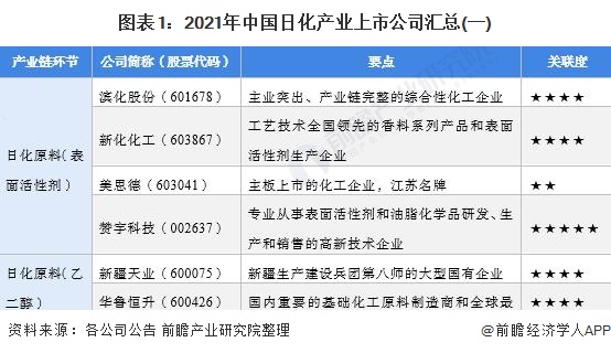 日化是人们日常生活中最主要的日化用品之一。目前,我国日化产业链上的上市公司较多,分布在各产业链环节。具体包括: