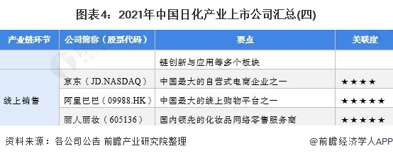 日化线上销售上市企业:京东集团(JD.NASDAQ)、阿里巴巴(09988.HK)、丽人丽妆(605136)。