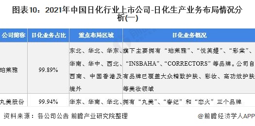 在日化行业上市企业中珀莱雅、丸美股份、水羊股份、上海家化、拉芳家化、名臣健康、两面针等企业日化业务占比较多,且业务覆盖范围较广。