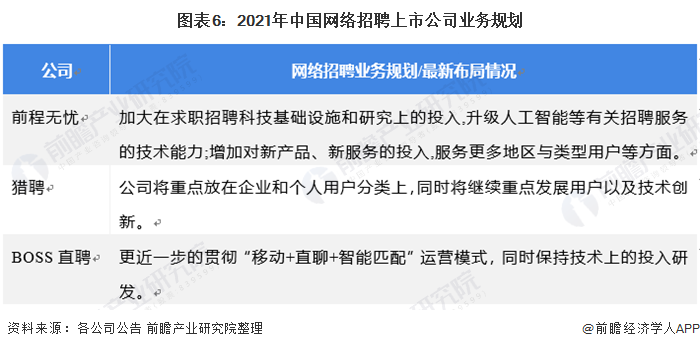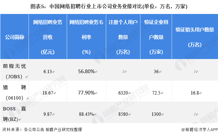 4、网络招聘行业上市公司网络招聘业务规划对比