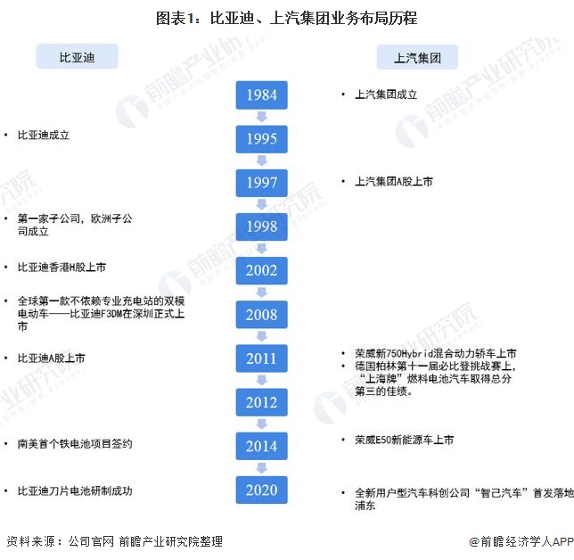 1、比亚迪VS上汽集团:新能源汽车业务布局历程