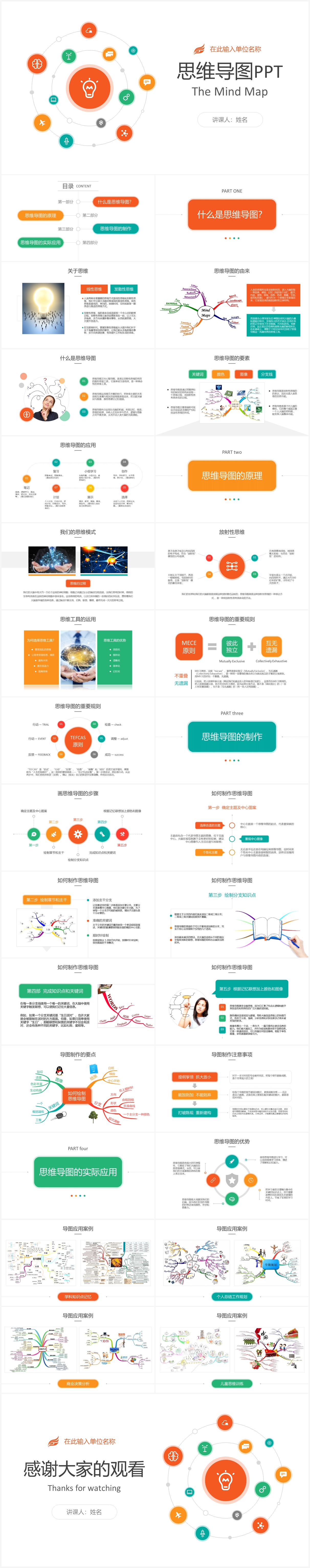 OVO图库提供精美思维导图培训课件PPT 树状图思维导图PPT信心图表模板 思维导图管理培训结构化思维PPT模板下载