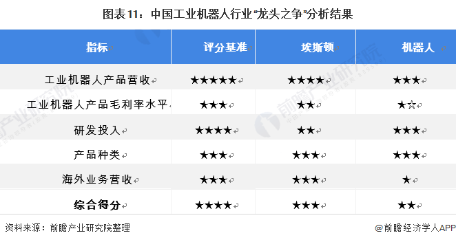 总体来看,埃斯顿在产品营收尤其是海外营收方面较机器人优势较大,尽管机器人科研投入更多,但是研发成果埃斯顿更具优势。尤其是埃斯顿收购的海外公司的协同效应将营收增幅拉大,同时也说明国产工业机器人正在“走出去”,是我国工业机器人产品被海外市场认可的表现。前瞻在多维对比后得出南京埃斯顿自动化股份有限公司是我国工业机器人行业的第一。