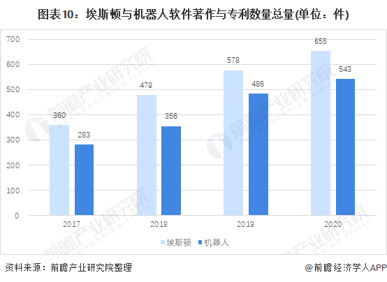 尽管机器人的研发投入金额与占比均比埃斯顿高,但是专利方面埃斯顿的专利数量一直高于机器人。2020年时埃斯顿共有软件著作197件;授权专利458件,其中发明专利157件;同年机器人拥有专利 403 项,其中发明专项226项,实用新型76项,外观设计101项;软件著作权140项。