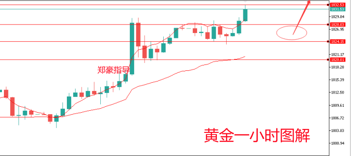 第二:今天我们继续顺势做多处理。亚盘提示1820-1826区域直接做多进场。我们盘中也是在1826现价做多,见1824再次补仓多单进场,对,就是这么嚣张,就是这么肆无忌惮,就是这么狂徒之言。趋势破位,比例计算是1:1的30美金的突破。指标上,结构上,形态上都没有顶部信号。继续刷新高点是时间问题。