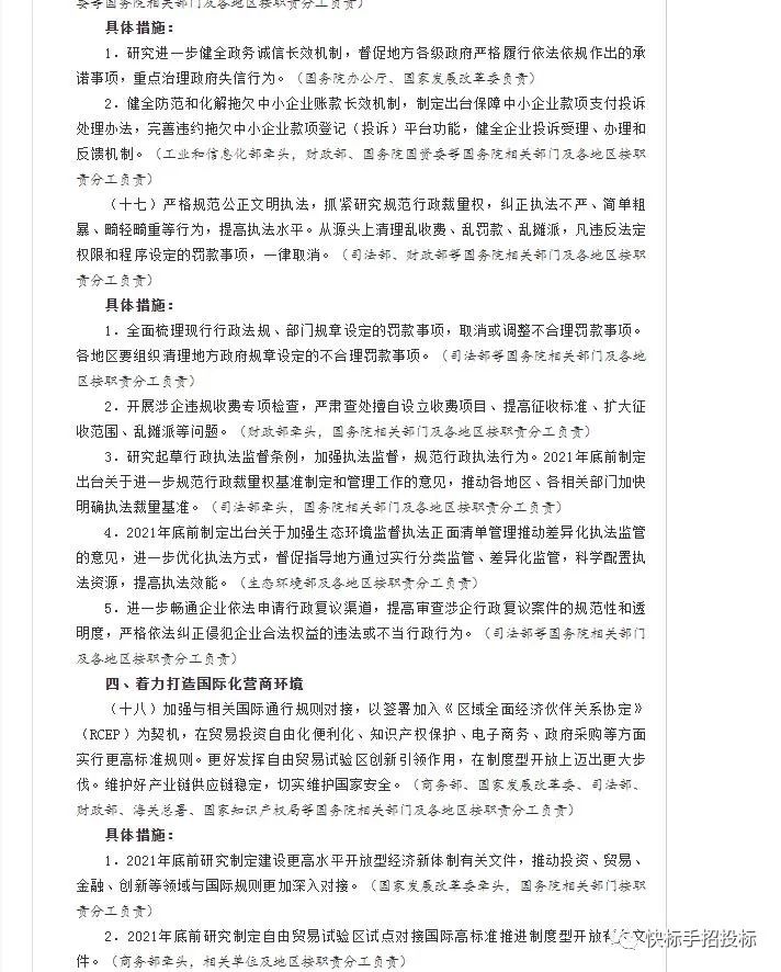 关于招投标,《全国深化“放管服”改革着力培育和激发市场主体活力电视电话会议重点任务分工方案》(下面简称《方案》)中提到: