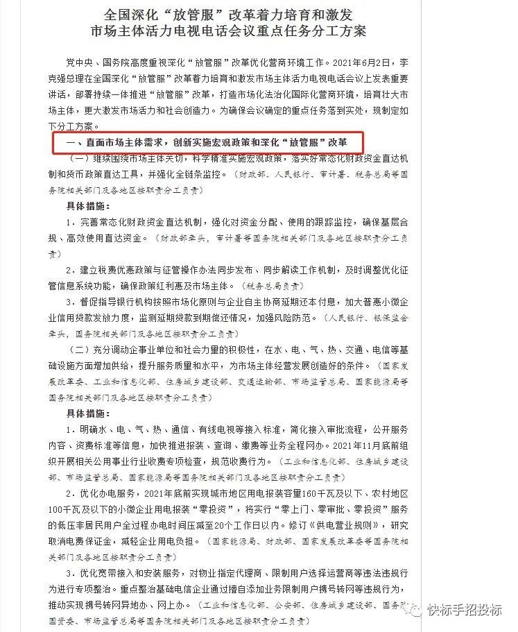 昨日,国务院办公厅发布关于印发全国深化“放管服”改革着力培育和激发市场主体活力电视电话会议重点任务分工方案的通知。