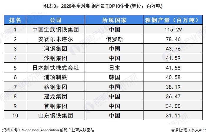 ——中国有7家企业上榜全球粗钢产量TOP10企业榜单