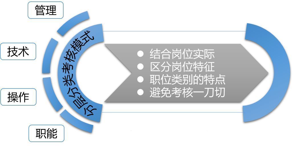 针对不同岗位的不同工作特征,将该公司岗位分为管理、技术、操作、职能等几大类别,并基于不同岗位的核心工作职责分别设置绩效考核指标,进而进行考核,构建分层分类的考核模式。在进行绩效考核时,结合岗位实际工作情况,区分不同岗位特征、职位类别的特点,建立起各有侧重、各具特色的考核内容和指标体系,避免绩效考核一刀切问题。