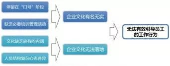 1、企业文化有名无实,仍停留在“理念、口号”的阶段,无法起到有效指导员工的作用。