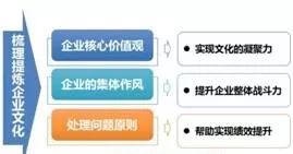 3、第三个层面是处理问题原则:明确员工在日常工作中遇到问题时的处理原则,比如与客户产生矛盾时应该怎么处理、工作出现失误时应该怎么处理等,属于企业文化的操作理念层面。这个层面的内容提炼将企业文化有机的落实到员工的日常工作中,告诉员工具体应该怎么做,以有效引导员工的工作行为,帮助企业实现绩效提升。
