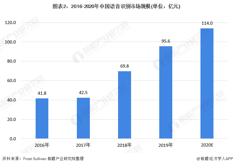 疫情之后不仅是工业领域,政务服务领域的语音机器人、传统行业企业的语音机器人也将有较高的市场增长空间。另外,NLP、AI数字员工、RPA的发展,一定程度上也将重塑AI应用场景。2019年中国语音识别行业市场规模为95.6亿元,语音识别市场规模保持高速增长,2020-2024年复合增长率预计为19.2%。初步预计2020年,中国语音识别行业市场规模将突破百亿元。