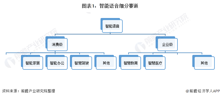 智能语音市场按客户类型可分为消费级市场和企业级市场。消费级立足于个人日常生活,主要包括了智慧生活、智能家居、智慧办公、智能驾驶等场景,具体产品包括智能手机、智能可穿戴、智能音箱、智能家电、翻译机、录音笔、转写TWS耳机、智能车载等。