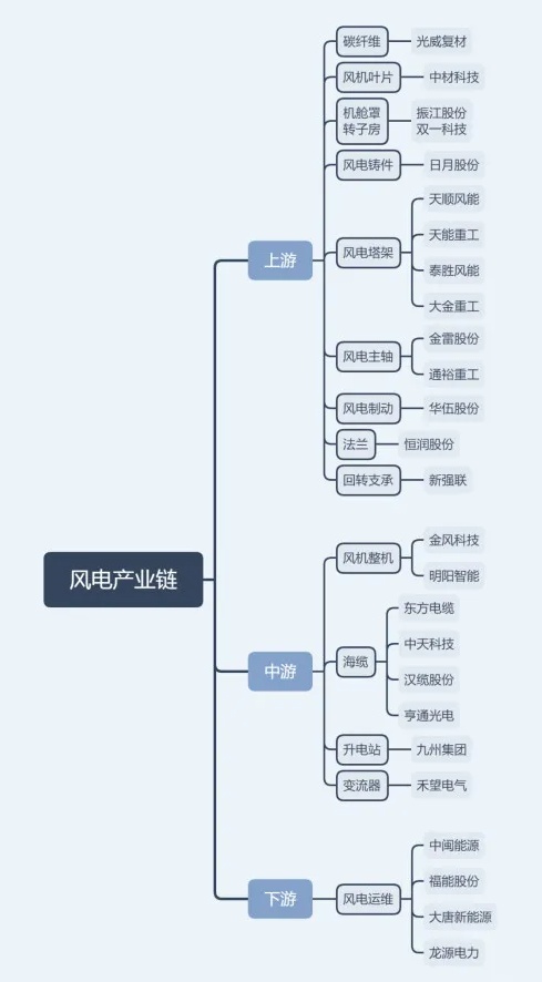 综合各家机构研报的分析,可梳理出风电行业的各大龙头:
