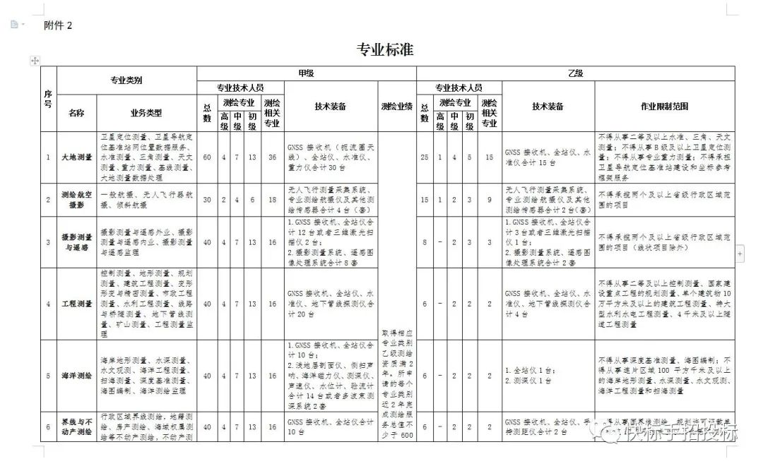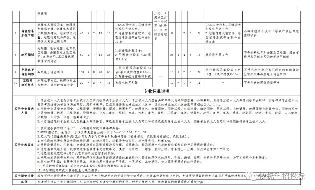 👉 测绘资质等级专业类别的申请条件和申请材料的具体要求,由《测绘资质分类分级标准》规定。