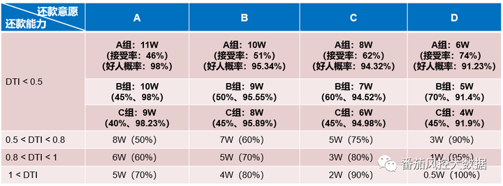 当然以上的额度矩阵并非一成不变,最重要的是仍要用ABtest去验证额度效果: