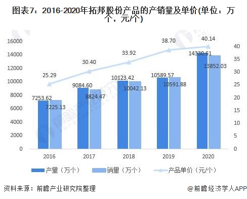 伴随公司多年来持续的研发投入,拓邦股份的产品日趋智能化、物联化、复杂化和模组化,产品的附加值也得以持续提升。2016-2020年,拓邦股份的智能控制器产品单价逐年上升,由2016年的25.29元/个增加至2020年的40.14元/个。