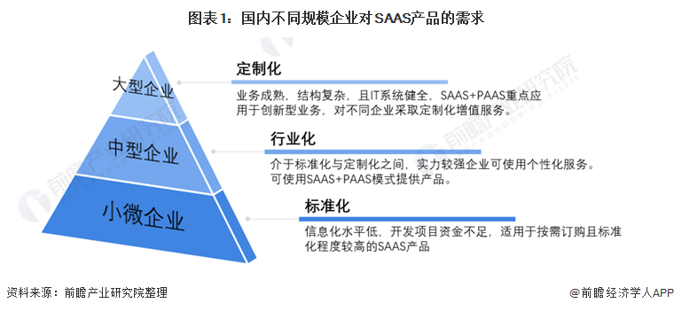 国内不同规模企业对SAAS产品需求不同