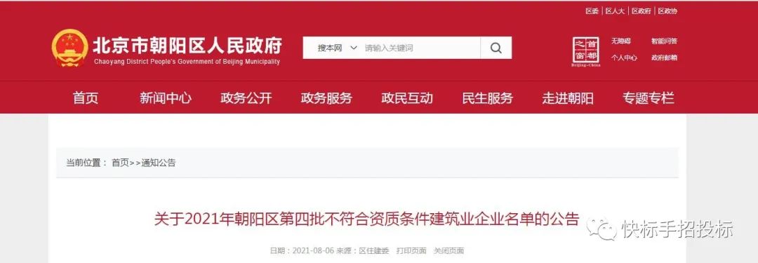 近日,北京市朝阳区人民政府发布《关于2021年朝阳区第四批不符合资质条件建筑业企业名单的公告》,筛查出第四批注册建造师数量不满足相应资质标准的建筑业企业。