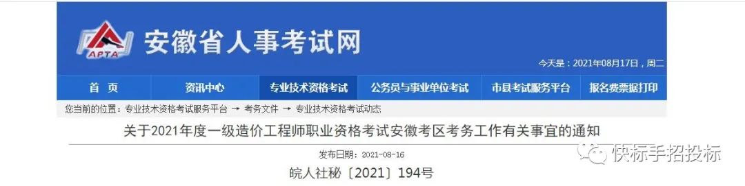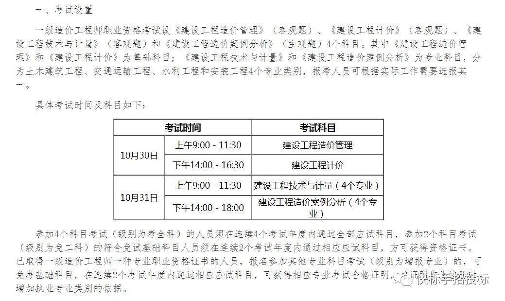 安徽省公布一级造价师考试的报名时间及安排!