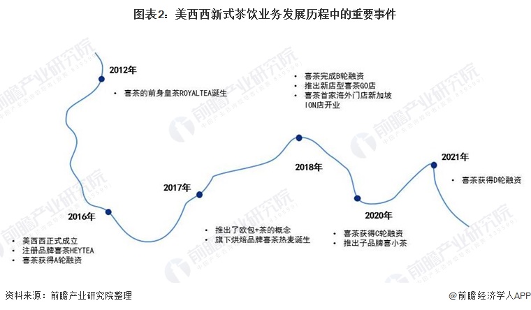 美西西作为新式茶饮行业的龙头企业之一,其前身皇茶ROYALTEA于2012年诞生;2016年,美西西正式成立并注册品牌喜茶HEYTEA;此后,公司不断扩张门店并于2018年在新加坡设立了首家海外门店。2020年,美西西还推出了喜茶的子品牌喜小茶。