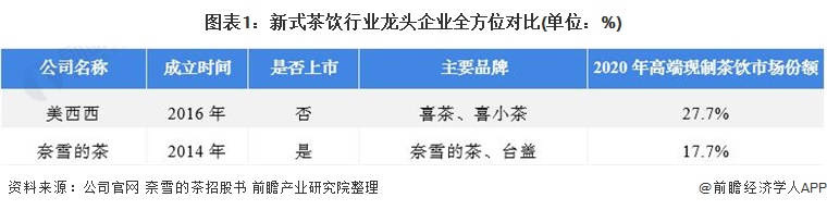 1、新式茶饮行业龙头企业全方位对比