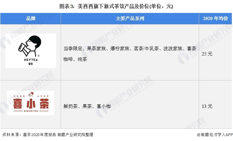 美西西在新式茶饮业务布局包括主品牌喜茶和子品牌喜小茶。其中喜茶定位为均价25元的新式茶饮,喜小茶定位于均价为13元的新式茶饮。