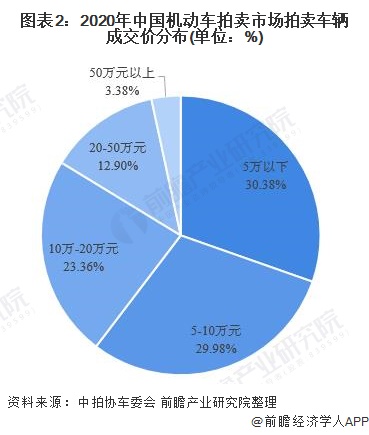 从价格分布来看,目前在我国机动车拍卖市场,5万元以下低端车辆仍占据市场主要份额,高端车型仍是拍卖市场的洼地。