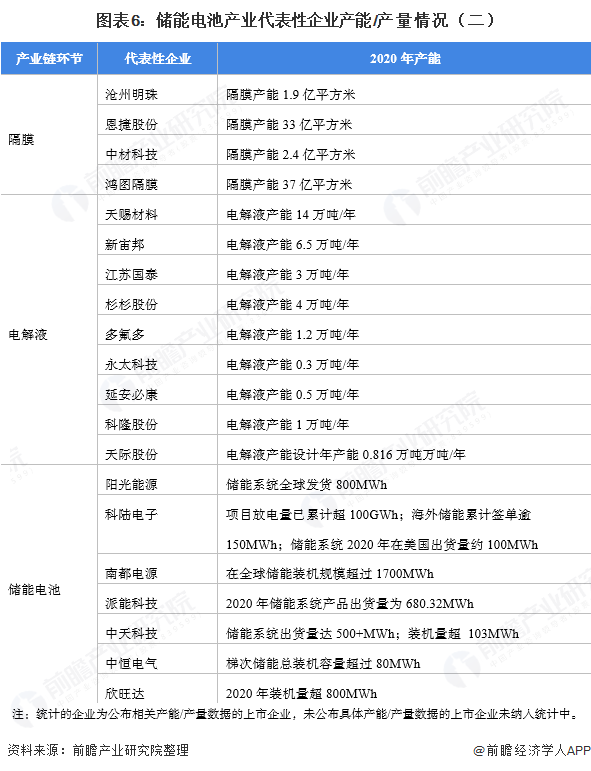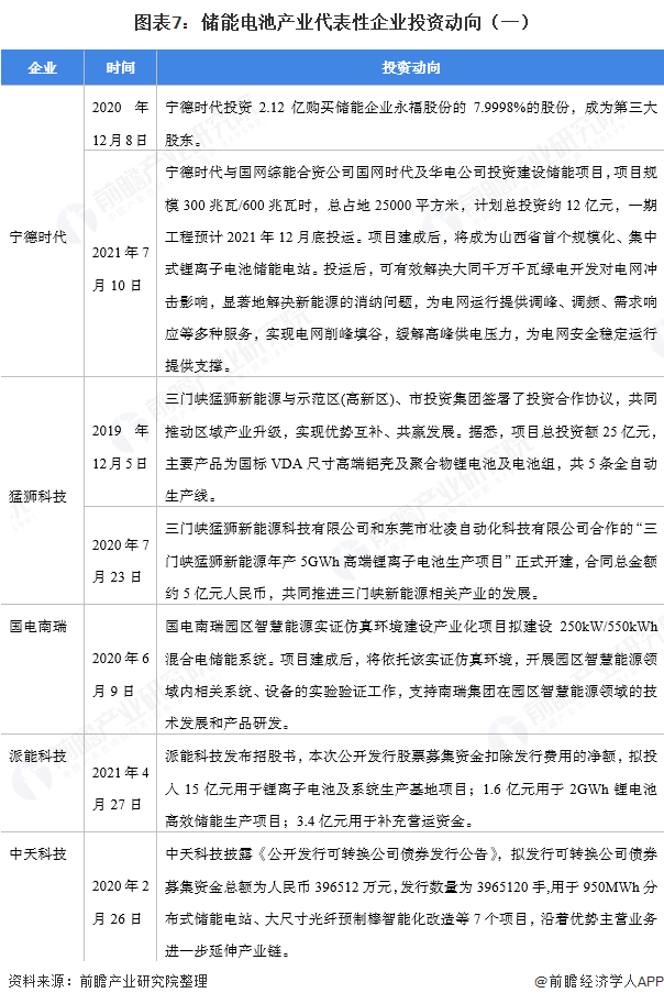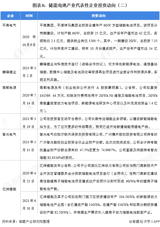 储能电池产业代表性企业最新投资动向