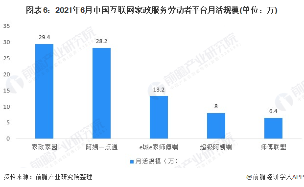 无论是传统家政企业还是互联网家政服务平台,都在快速实现数字化,在用户规模方面,2021年6月天鹅到家及e城e家月活跃用户规模均超过300万排名榜单前二,新增方面,e城e家新增用户更具优势。