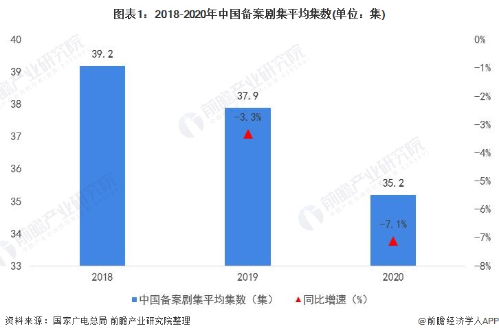 在国家大力推行“提质减量”的大背景下,近年来我国网络长视频制作方更加重视内容质量而非数量,近三年全国备案剧集平均集数由2018年的39.2集下降至2020年的35.2集。