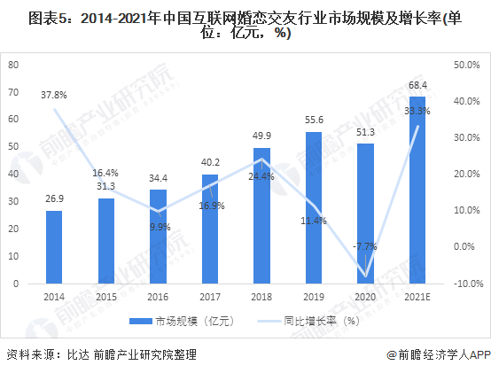 互联网婚恋交友市场规模在2020年达51.3亿元