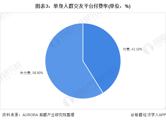 根据AURORA的调研数据显示,单身人群中有41.1%的人曾在交友平台上曾有过付费行为。