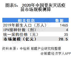 以2019年新生人口1465万人测算,我国IPV年需求量将达到5860万支,约为目前批签发量的1.5倍。目前国内IPV的招投标分一类苗和二类苗两种方式,平均中标价分别为35元/支和168元/支;未来全面接种IPV后,预计将统一按35元/支采购,对应2020年市场空间约20.5亿元。