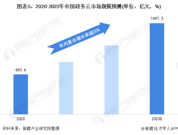 并且随着数字政府建设的不断推进,国家对数字化水平的要求不断提高,未来政府对政务云服务的要求将越来越高,政务云市场规模也将继续高速增长。预计未来三年,政务云市场规模年均复合增长率超过30%,到2023年,中国政务云市场规模有望达到1497.3亿元。