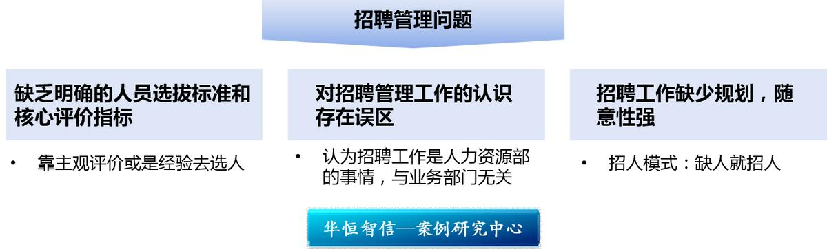 通过深入访谈和分析,华恒智信顾问团队认为该公司在招聘管理方面主要存在以下几个问题: