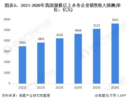 预计到2026年我国水务行业市场规模有望达5625亿元