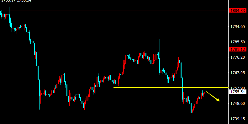 操作策略:黄金直接于现价1755附近做空,止损1762.5,目标看1745-1738附近