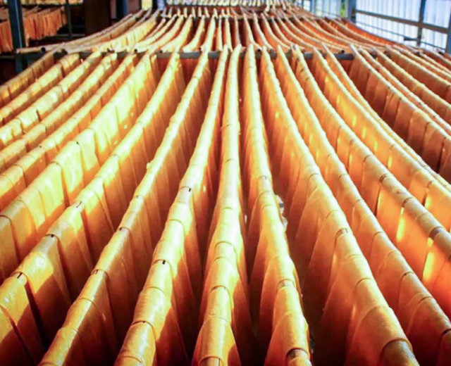 豆腐皮属于原生态制作,用石磨将黄豆磨成豆浆,铁锅煮熟,当锅面结出一层薄薄的细膜,以竹竿挑起,放在通风的地方晾干,就成了豆腐皮。